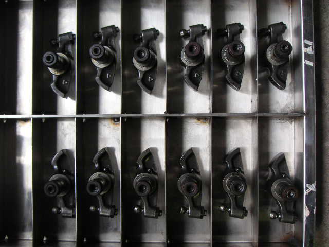 よくオイルがもれるロッカーアームです、画像を撮り忘れましたがロッカーアームシャフトに溝があるのですがそこにはなにも入っていません、ですが部品番号を指定して部品を取るとそこに入るパッキンがあります。今は本国手配になってしまうため何台分か在庫しています。