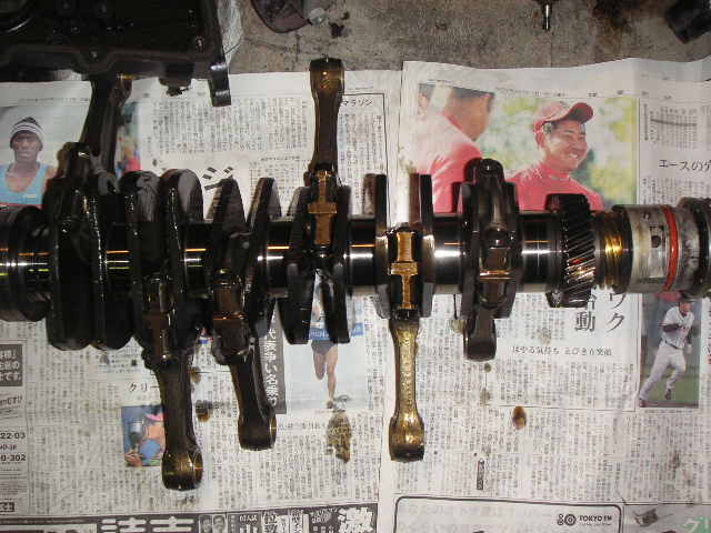 シリンダー、カム、ピストンなどはキズもないので綺麗にして使用します。時間と予算があればバランス取りやWPC加工などやっておきたいところです。